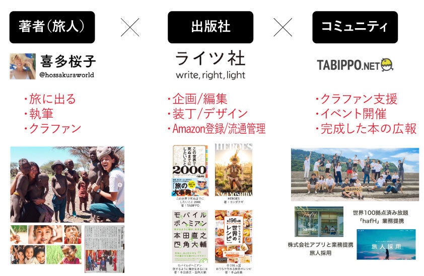 今回は、「喜多桜子×ライツ社×TABIPPO」の3団体によるプロジェクトです。本をつくって完結ではありません。妥協のない本を作り、それを日本中に届けるために全力でがんばります!