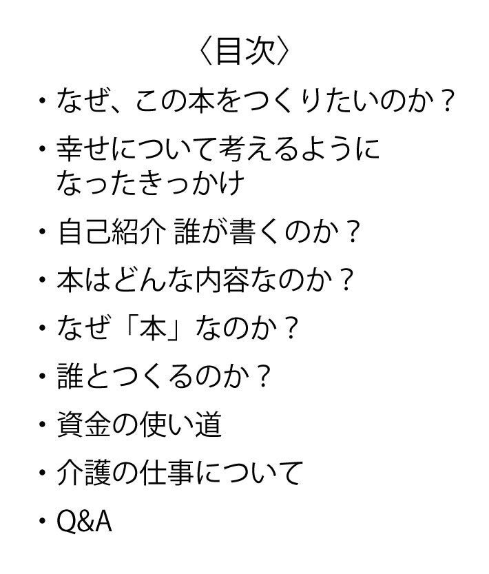 本を開けば後悔のない人生を送るヒントが沢山詰まってる。そして、本を読んだ後に思わず「自分にとっての幸せって?」と問いかけたくなる。そんな本をつくりたい。