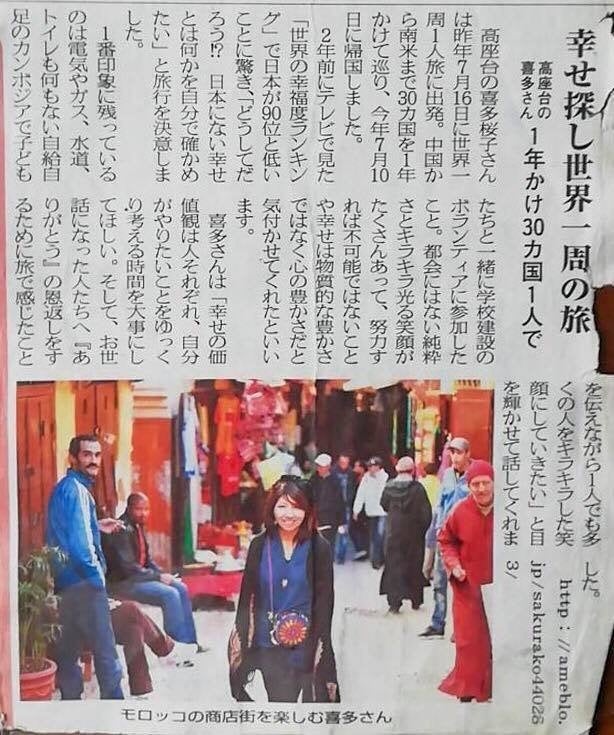 世界を二周して、いろんな国の人々と出会い、それぞれの価値観、そしてたくさんの幸せの形を目にしました。それがなければ、今のわたしは自信を持って、「わたしは幸せだ」と言い切れなかったでしょう。」