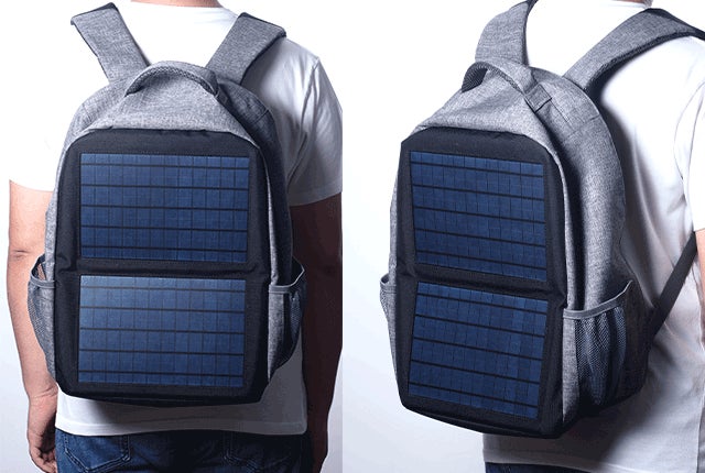 バックパックにソーラーパネルが搭載されています。