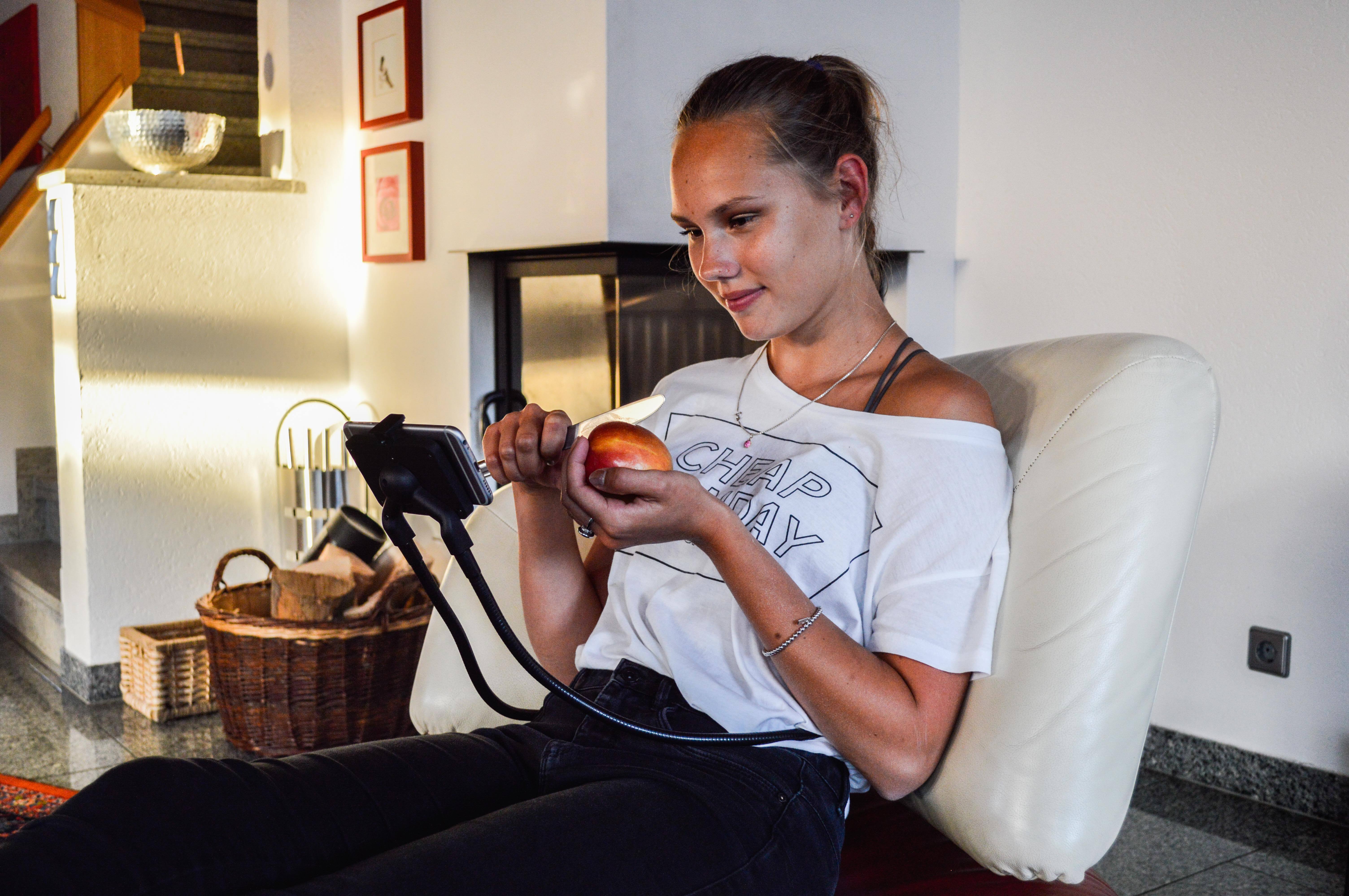 FLEXD-SMARTを使えばソファーやベッドで、ハンズフリーでスマホを使用できます。