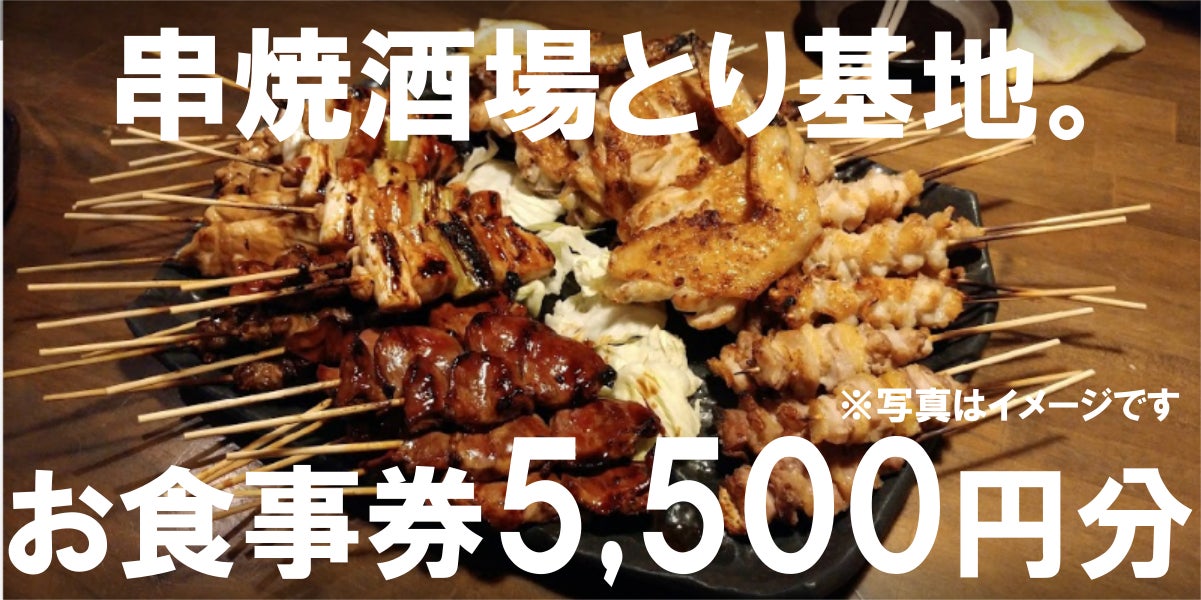 5,000円 【500円お得】「串焼酒場。とり基地 」お食事券5,500円分。