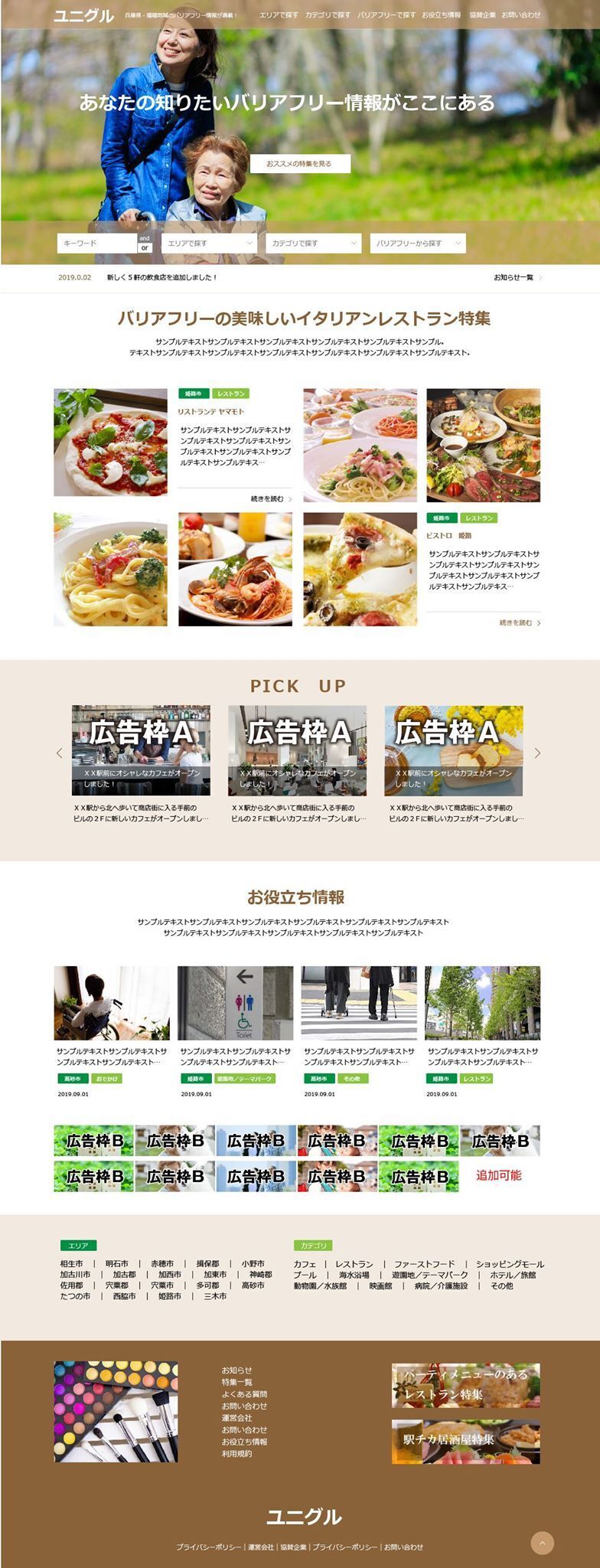 全ての掲載店にGoogleインドアビューを実装したユニバーサルデザインのグルメサイトをつくります。『段差』や『トイレ』『介助者の要否』が事前に確認でき、身体障害をお持ちの方も安心してお店を選べます。また、離乳食や介護食の持ち込み可否なども掲載し、あらゆる方が食事を楽しめるお店情報を提供します。