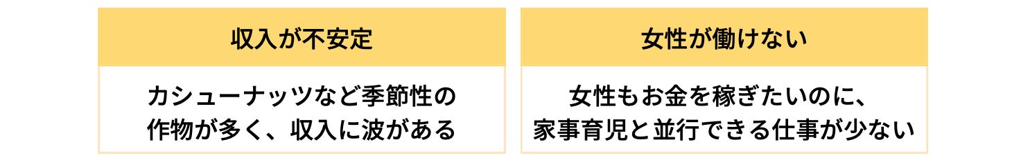 これを支えに大家族を養っています。どうしても安い主食に偏った食生活になってしまい、栄養不足を強く感じました。さらに、「勉強道具を購入できない」「体調を崩しても病院に行けない」「将来もずっとここを離れられない」といった悩みを抱えていました。彼らは岐路に立った時に選択肢を持てないんだと知りました。