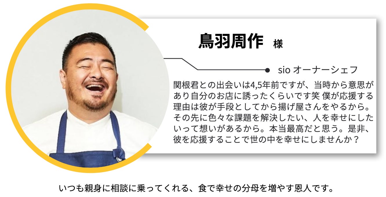なにより、僕はからあげが大好きです。大人も子供も、食通も関係なく、世界共通でおいしいを共有できる素晴らしい料理だと思っています。そんな大好きなからあげで「おいしい」を増やしていきたいと思いました。