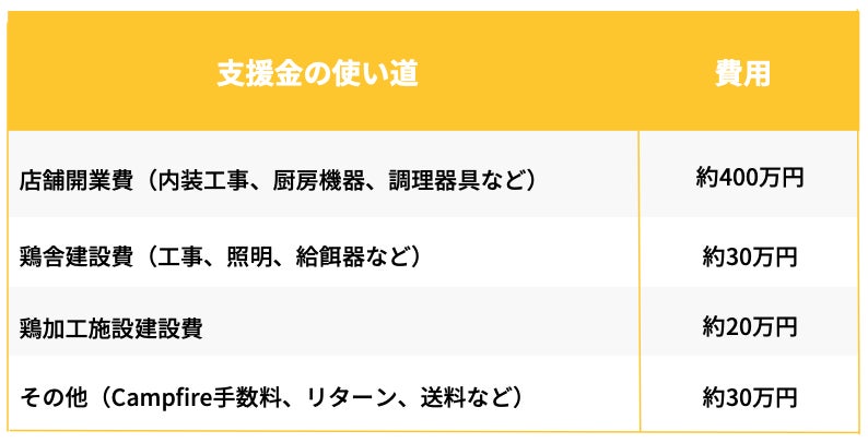 頂いたご支援をなるべく多く「からあげ×養鶏」の仕組み作りに使いたいと思い、リターンに支援型のコースも多く入れさせていただきました。Campfireルール上、同じ内容のリターンを異なる価格設定にできないため、A~Eコースで各リターン内容を少しずつ変えさていただきました。(分かりづらいので下記にまとめました。詳細は各リターン欄をご覧ください。)