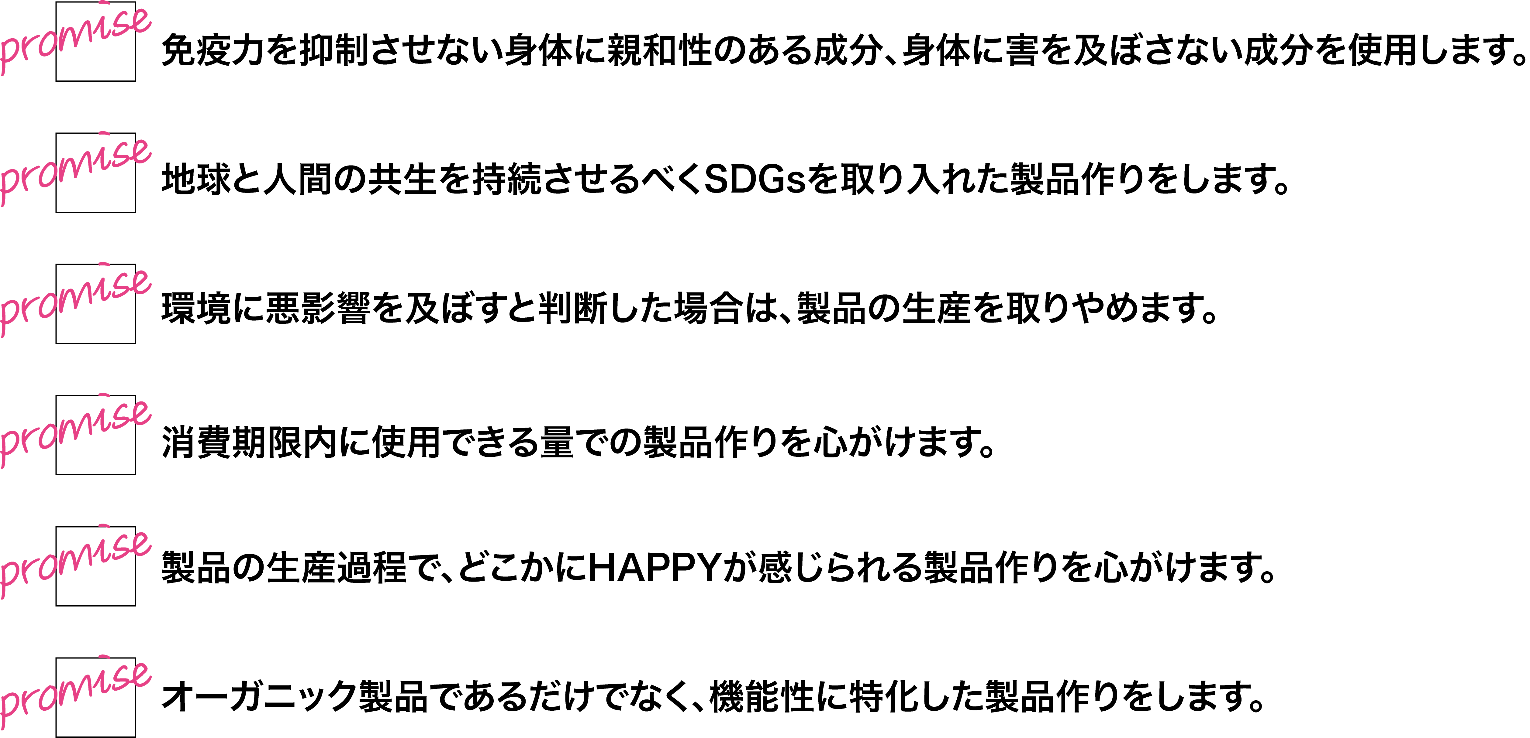 悪影響を起こさない成分や天然成分・オーガニック成分を使用していきます。