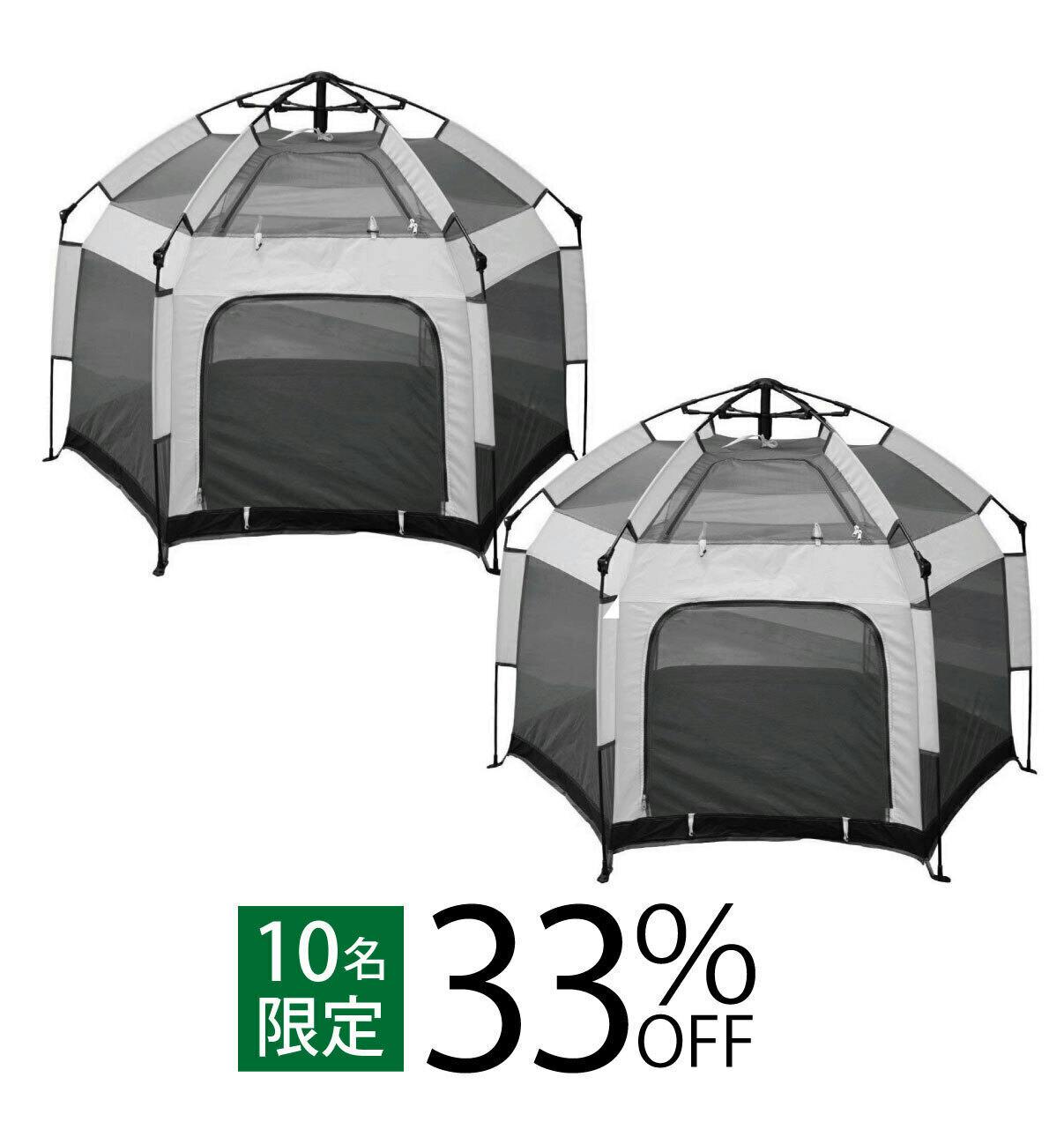 ※メッシュ生地を風が通り抜け、マジックテント本体も6本のペグで地面に固定できるので、吹き飛ばされる心配はありませんが、防風仕様ではございません。