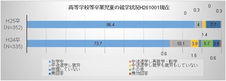 ◆H25年度卒業児童:86.4%が在学中だが、進学後半年で5%強が中途退学