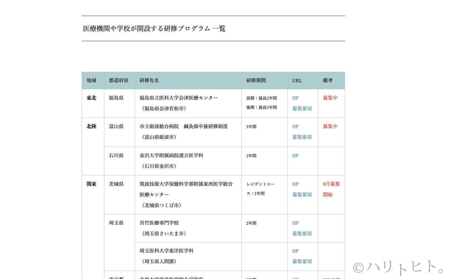 資格取得後に受講・鍼灸師の資格取得後に受講・参加ができる「研修制度」を一覧にして、掲載しています。