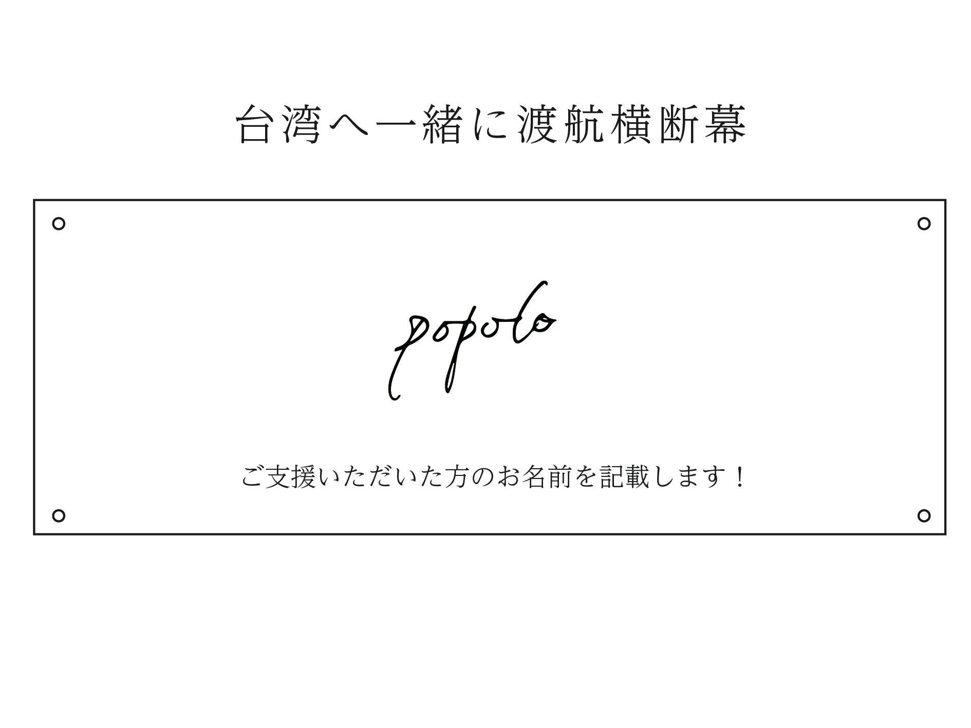 ※3000円の巾着以外のリターン商品にはすべて台湾に飾る横断幕に、お名前を記載させていただきます!!いっしょに台湾に行った気持ちでご支援頂けると嬉しいです!!