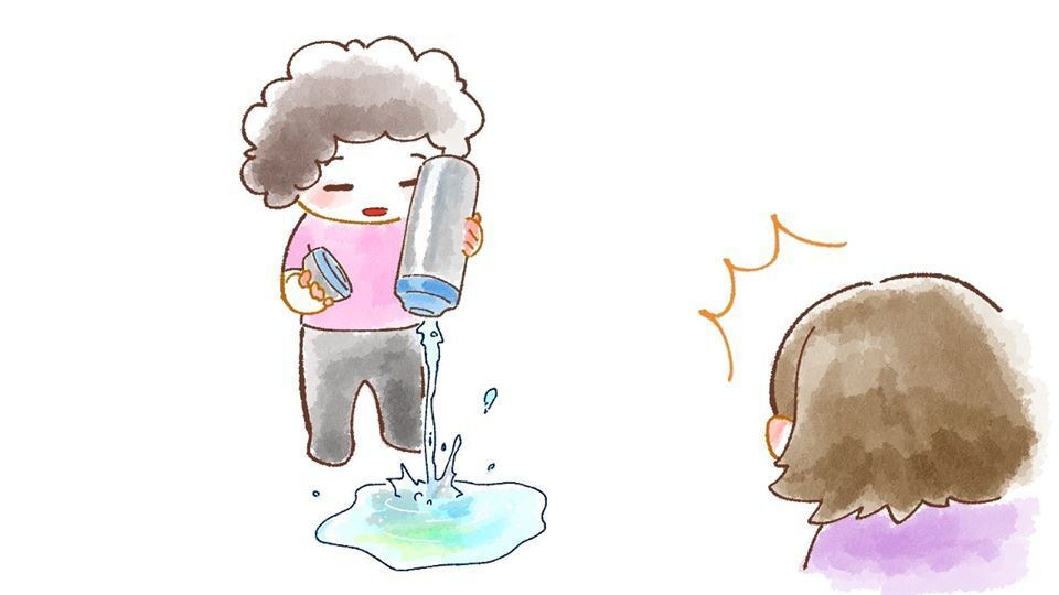 ・水筒の中に水を入れては、キッチンやリビングに水たまりを作ったり・・・