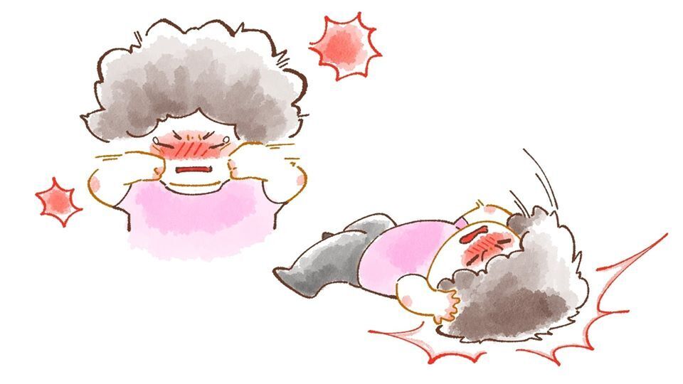 満身の力で、自分の顔をグーで殴ったり、ひっくり返って後頭部を床に打ちつけたりします。