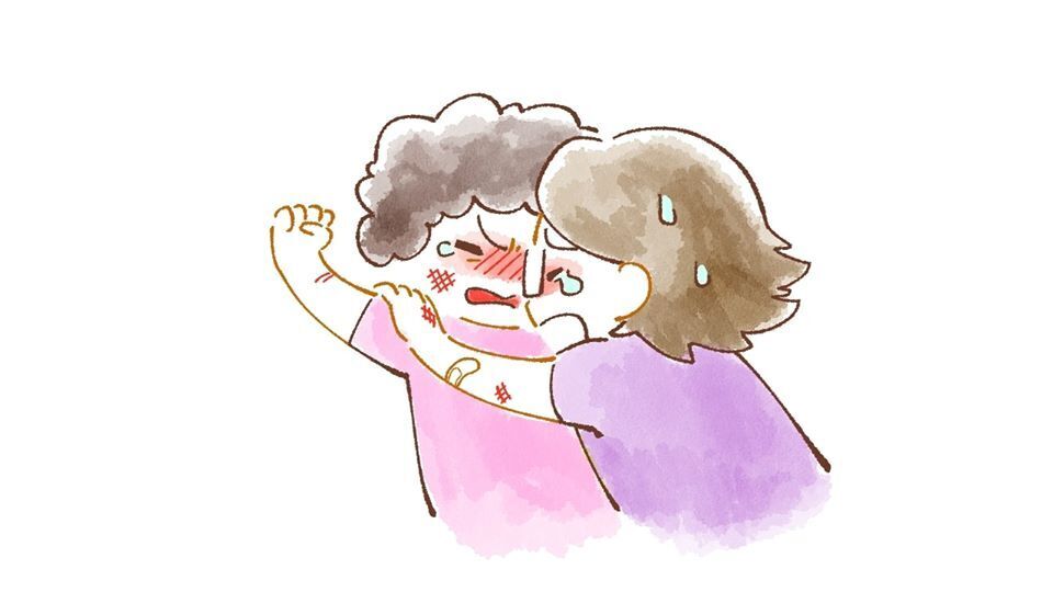 そんな時、私も馬乗りになって、全力で止めます。生傷も絶えません。