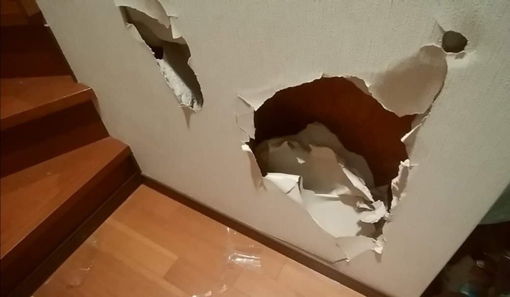 家の壁のあちこちに、大きな穴が。