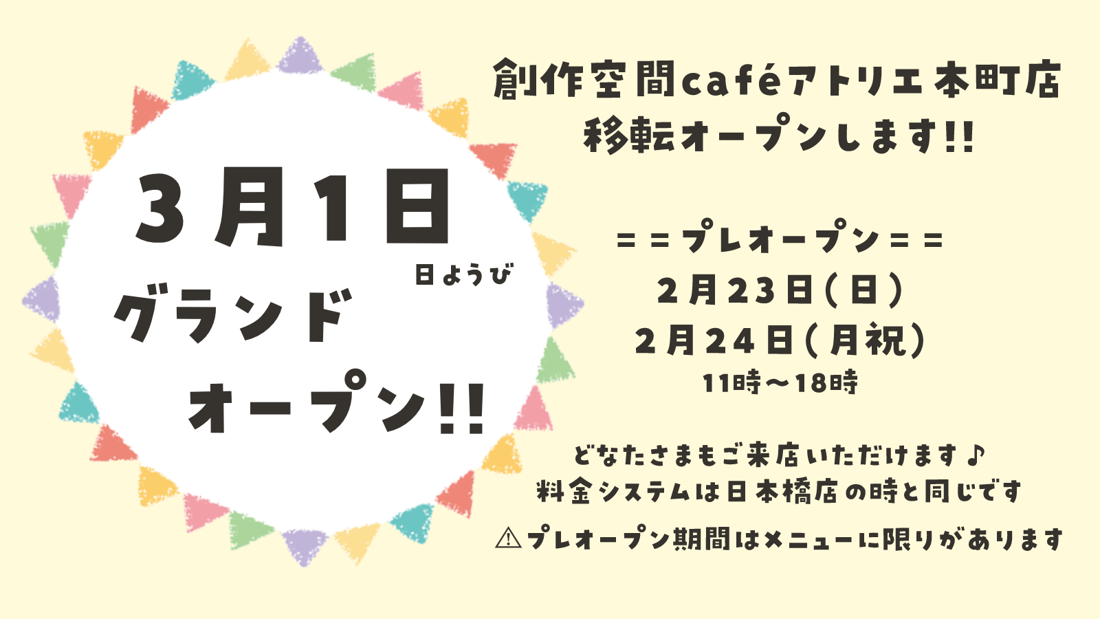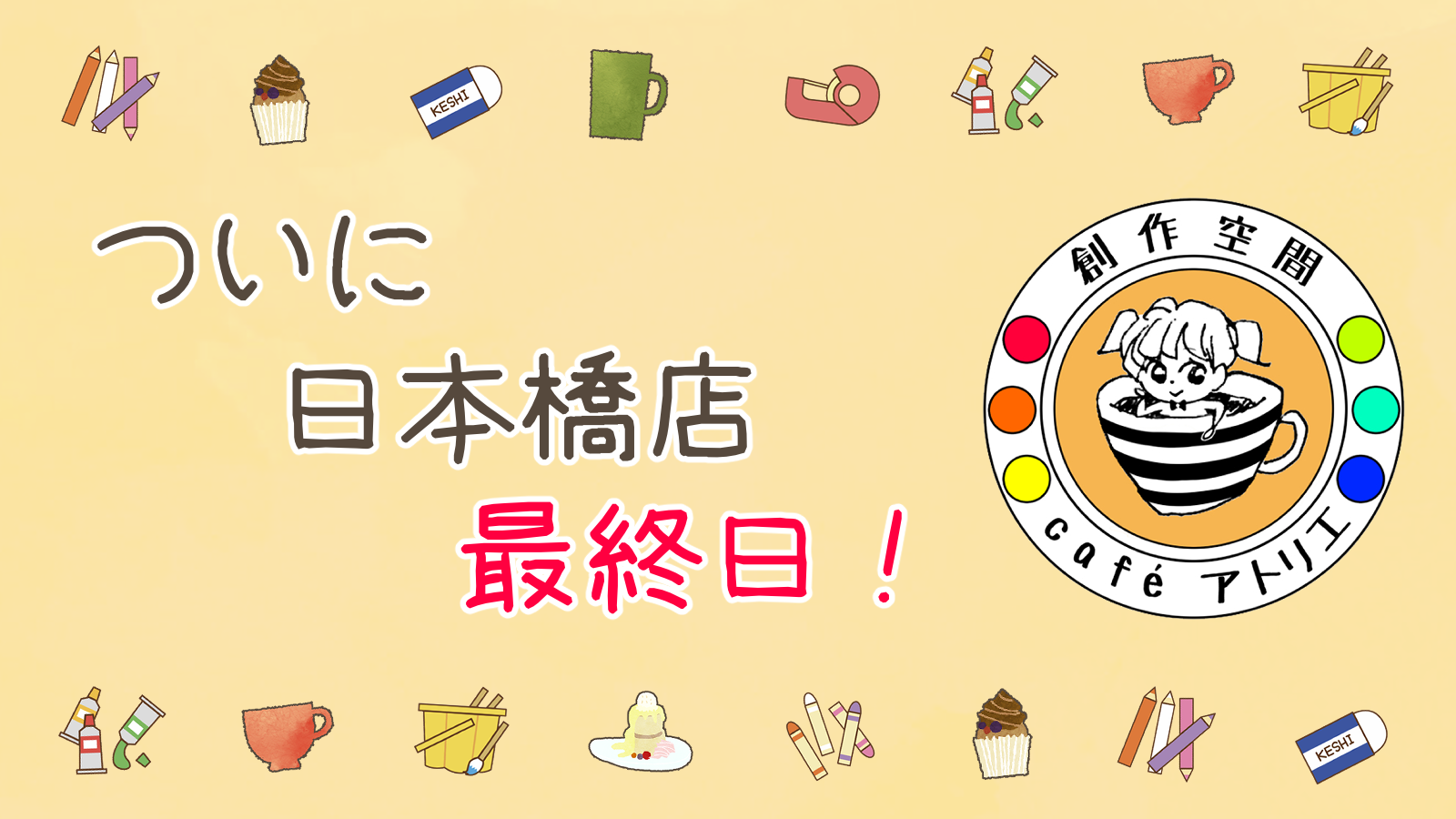 このたび、創作空間caféアトリエ日本橋店はテナントの家賃増額および突然の契約更新料等の請求に応じることができず、2019年12月末を目処に閉店するしかない状況に追い込まれてしまいました…。