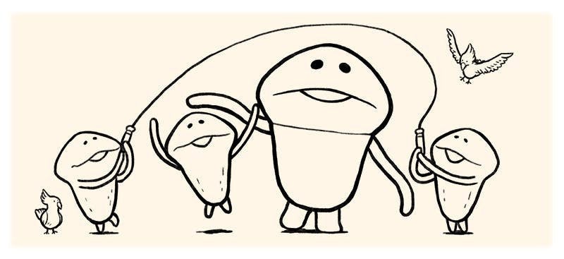 ▼なめこと戯れるリアルなめこの描き下ろしイラスト