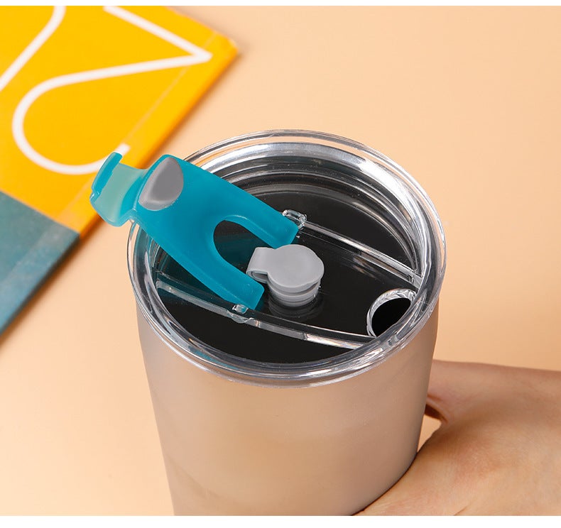 片手で飲み口を開けられるような設計になっており、飲み物がこぼれないようなゴム栓も付属しています。