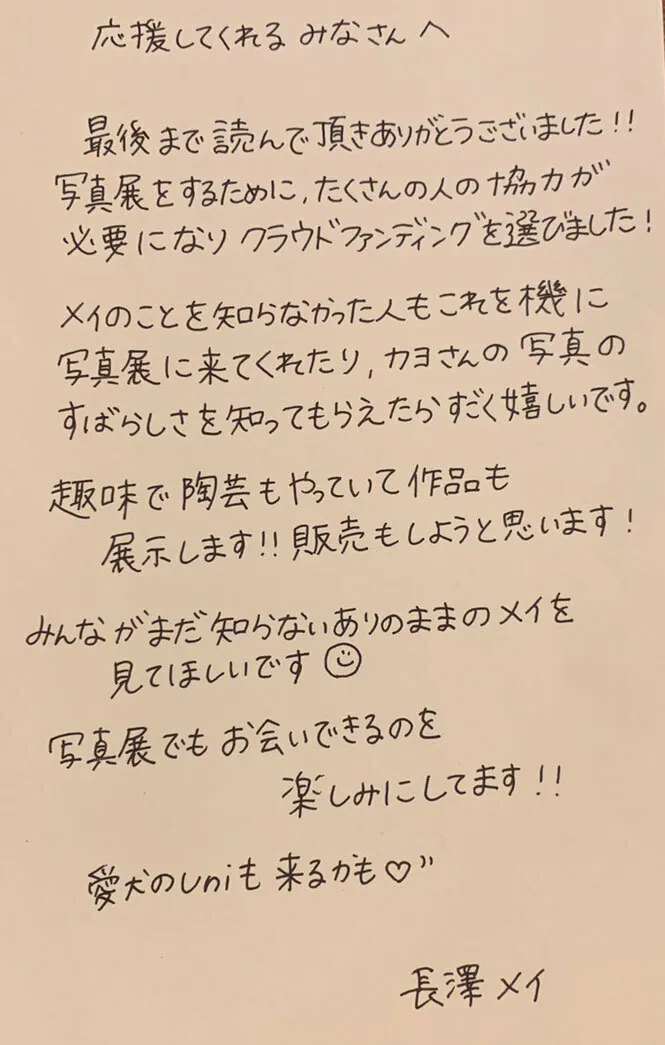 2019/11/15 17:52今日3000えんコース限定のポストカードが届きました( ^ω^)わーいあと6時間、、?今日でクラウドファンディング終わってしまいます(´;ω;`)あっとゆーまでしたたくさんの人が協力してくれて本当に感謝しかない1ヶ月半年にでした(´;ω;`)メイはリターンを返す時にみんなにお手紙を書くのが楽しみだ!本当に本当にありがとうありがとうありがとうです!(´;ω;`)(´;ω;`)(´;ω;`) もっと見る