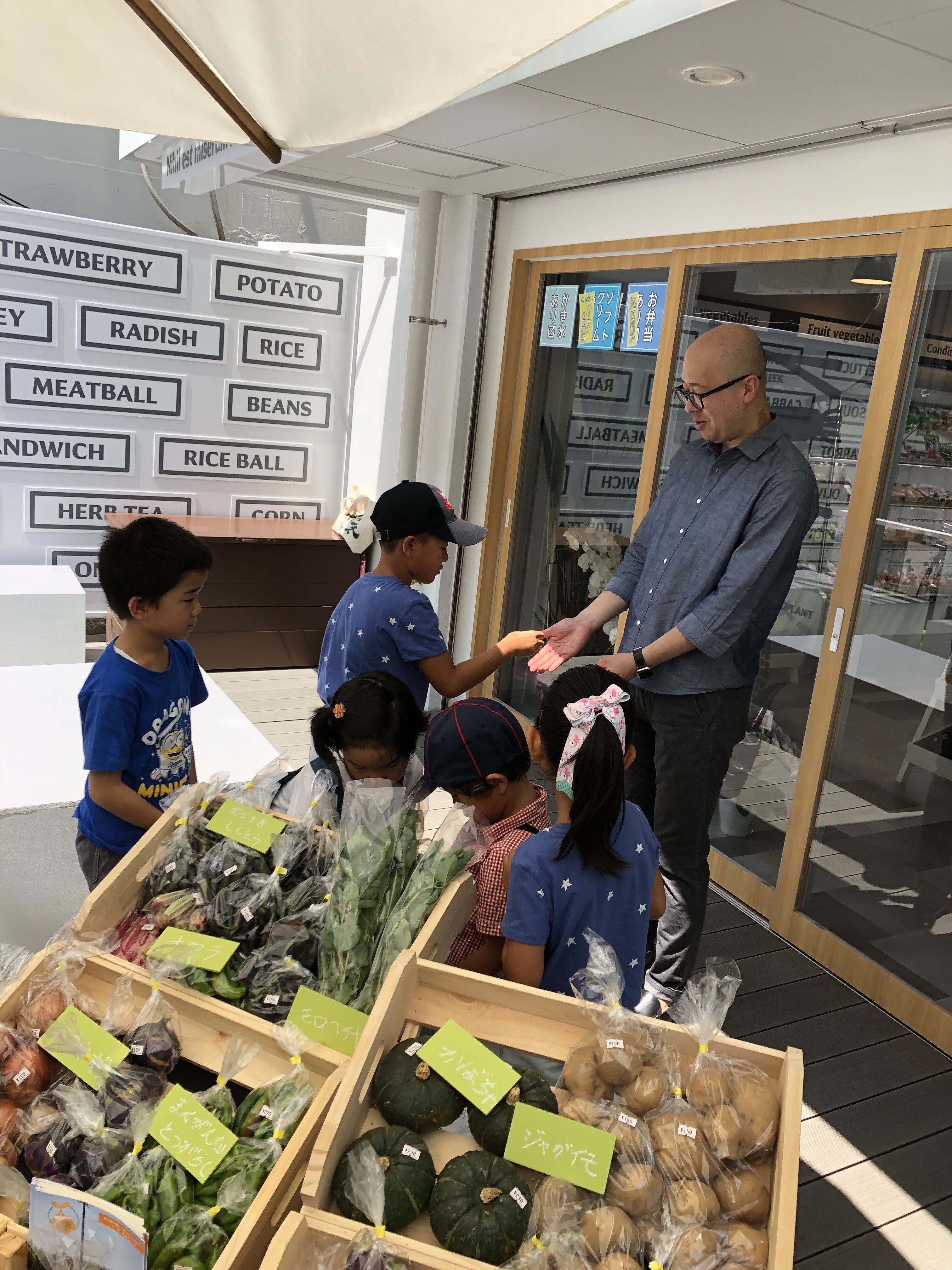 子供たち自身が野菜を育て、収穫して販売し、シェフがその野菜を使って作った料理をみんなで食べて、販売して得た対価で支払いをする、社会の仕組みを経験できる内容です。