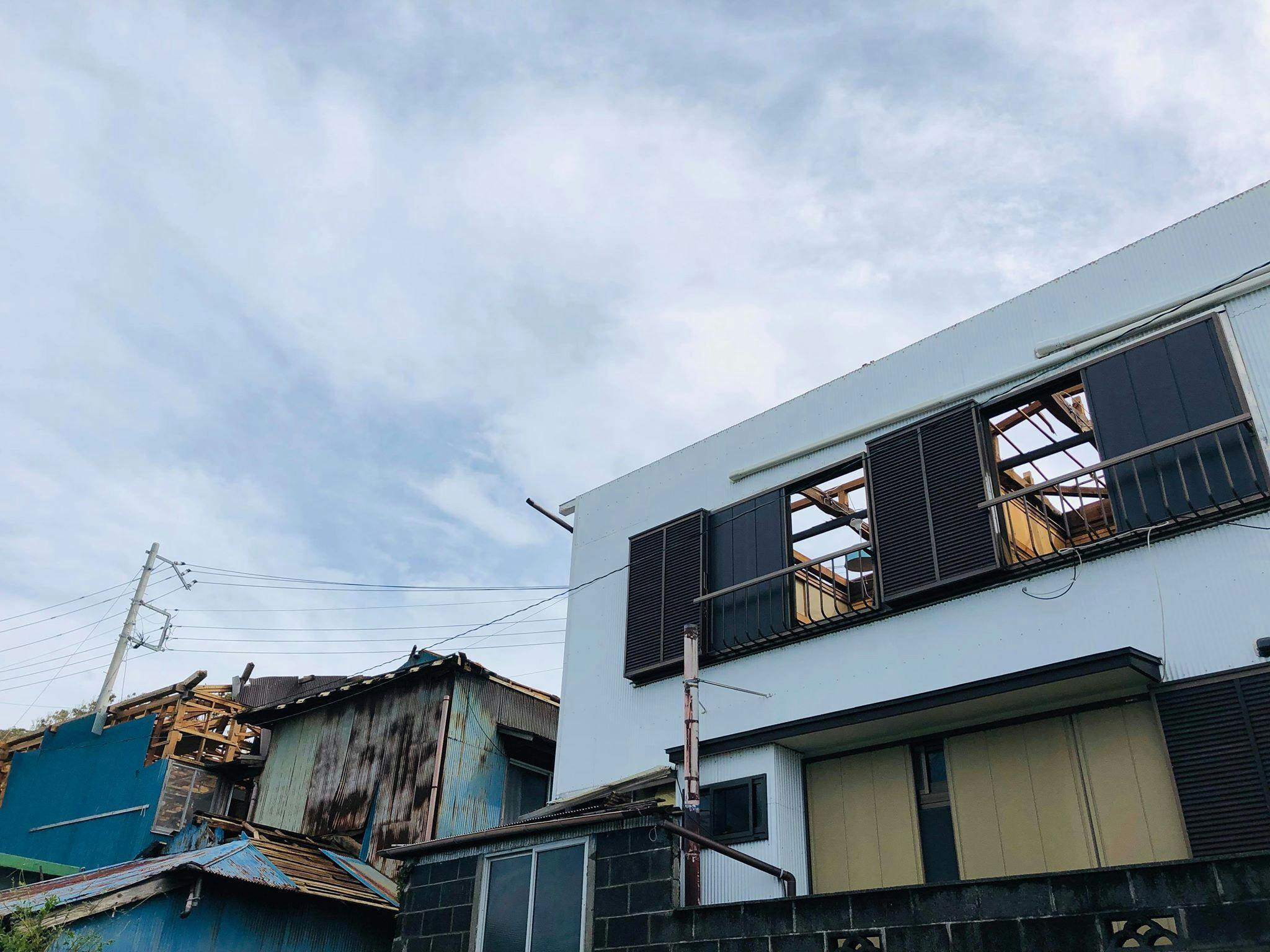 各地で猛威を振るった台風 15 号は、伊豆大島にも直撃し大きな爪痕を残しました。 「青とサイダー」も屋根が全面吹き飛ばされる等、大きな被害を受けました。現在は営業ができない状況に陥っており、一刻も早く復旧、再開を目指して動いています。