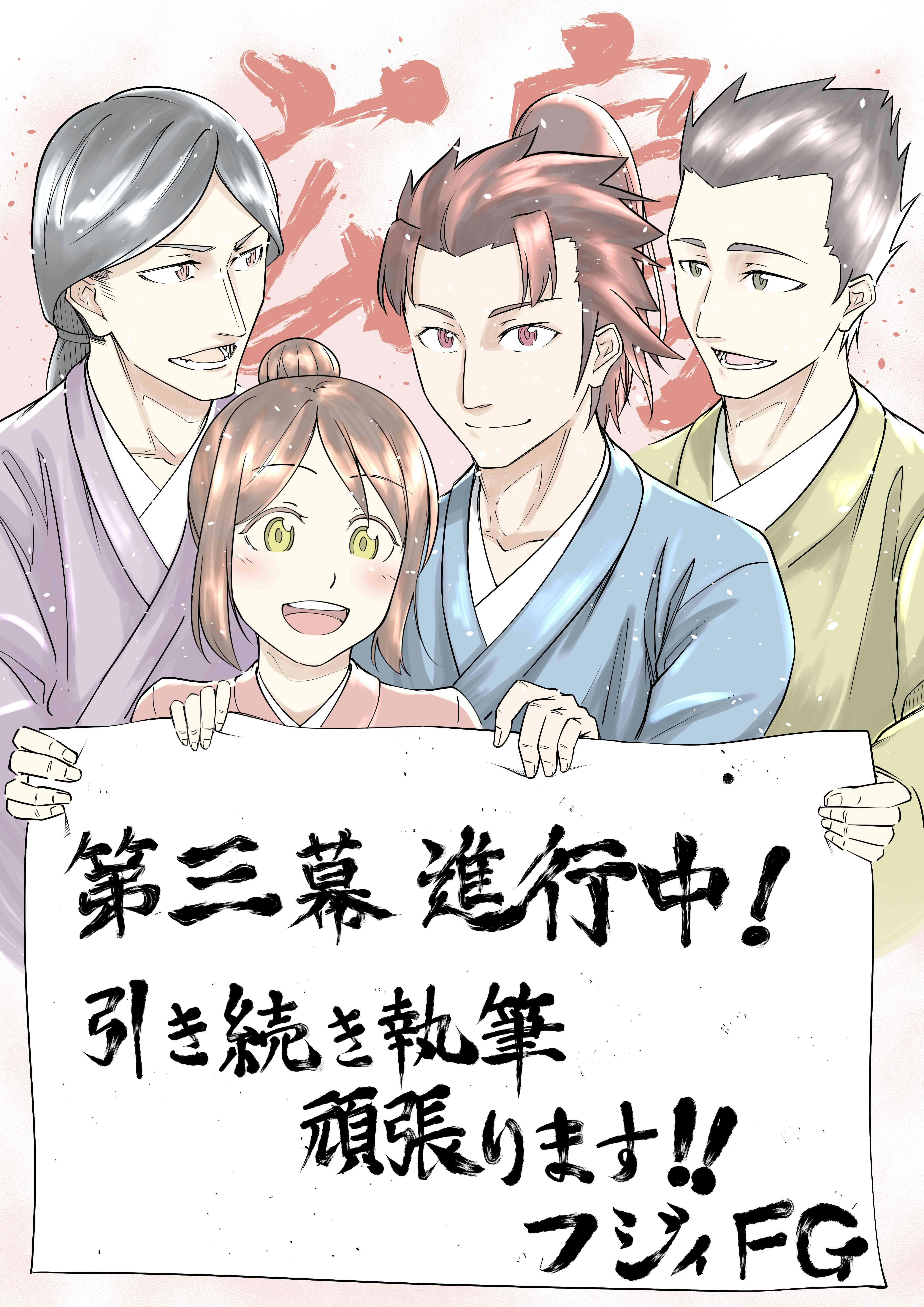 2019/10/03 23:16【クラウドファンディング 第三幕】皆様、いつもご支援を頂きまして誠にありがとうございます。現在進行中のプロジェクト【「広島藩の志士」全編マンガ化『幕末彼氏伝〜高間省三〜』】のクラウドファンディング第三幕(第三回)を記して、イメージポスターを作成しました。プロジェクトは第6章『大政奉還』が完成し、只今確認中。同時に第7章「3藩進発」の制作に入っております。これからも頑張っていきますので、引き続きご理解とご支援のほどよろしくお願いいたします。フジィFG もっと見る