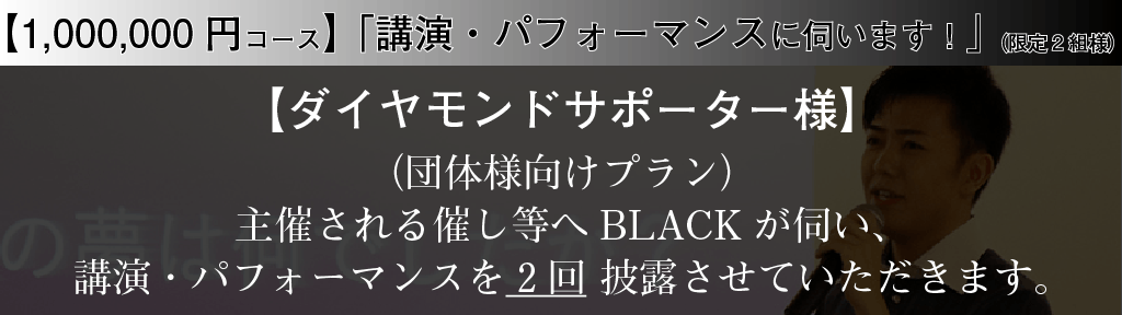 【2,000,000円】: 「ブラックサポーター様、講演・パフォーマンスに伺います!(団体様向け)」(限定1組様)