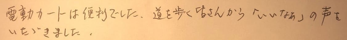 モニター様は「操作も簡単で、足の不自由な人には、本当に助かります。乗り心地も快適でした。」とご満足いただけたご様子でした。ご協力ありがとうございました。