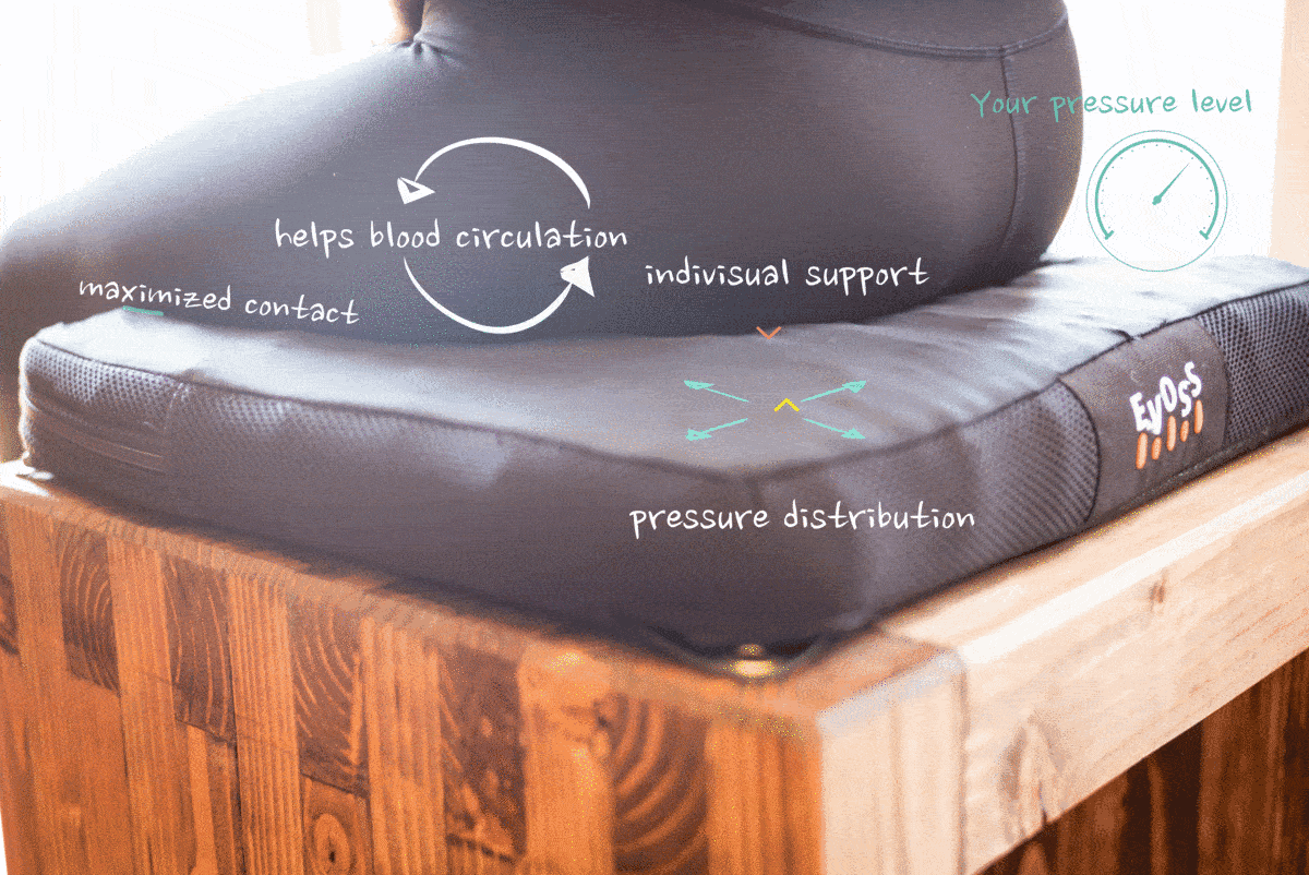 72個の独立したエアセルが体圧を分散させ、血流を保護するから、長時間座っても痛くならない、人間工学に基づいて設計された優れた機能のクッションです!