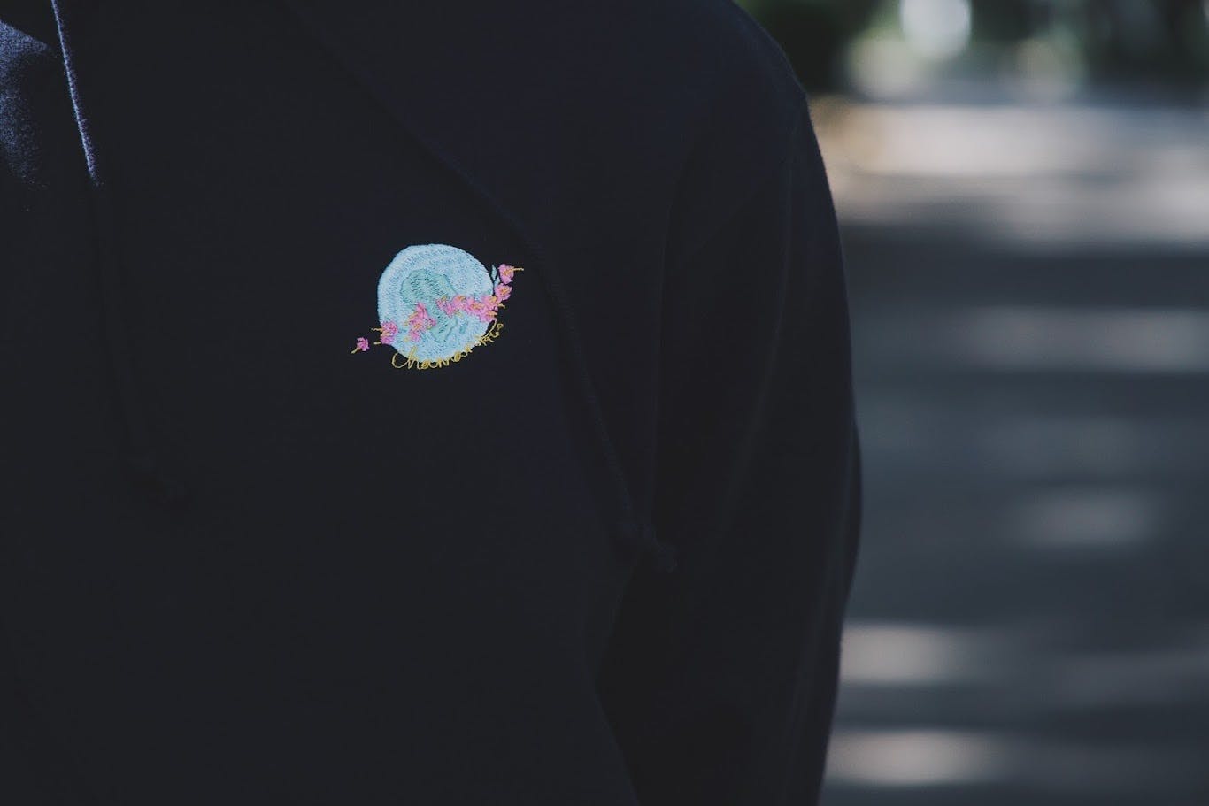 ※モデル着用サイズは Tシャツ L スウェット L となっております。詳しくは右のリターン画像のサイズ表をご確認下さいませ。