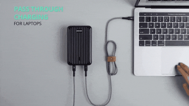 パススルー充電機能がついており、携帯用充電器を全容量に保ちたい場合に非常に役立ちます。デュアルUSB-Cポートを使用すると、SuperTankと他のUSB-C互換デバイスを同時に充電できます。また、100W電力供給により、SuperTankの充電と同時にパソコンも充電することができます(最大60W USB-C電力供給)。