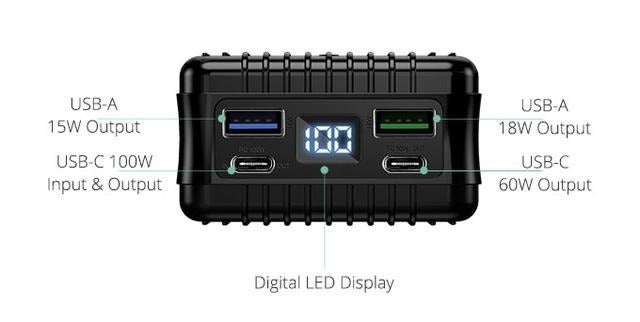SuperTankは合計最大出力は138Wで2つのUSB-Aポートと2つのPD対応USB-Cポート、合計4つのUSBポートを備えます。 パソコン、タブレット、カメラ、携帯電話、その他のモバイルデバイスを含む4台を同時に充電できます。PD3.0、QC3.0、FCPに対応しており、最新のセキュリティカメラ、プロジェクター、LEDライトなど、様々なデバイスも急速充電することができます。