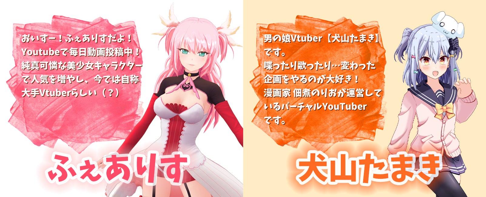ふぇありす/犬山たまき/甲賀流忍者ぽんぽこ/ピーナッツくん/ふくやマスター/天開司/歌衣メイカ/魔王マグロナ/もちひよこ/届木ウカ/兎鞠まり/あっくん大魔/さはな/星咲ちあ/さえきやひろ