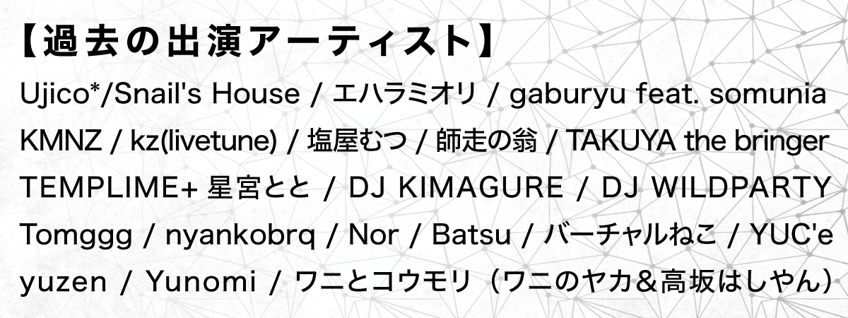 ▼イベントクレジット:12月下旬・各会場のラウンジスペースにあるモニタやプロジェクターでイベント中、支援していただいた方のお名前を表示させていただきます。
