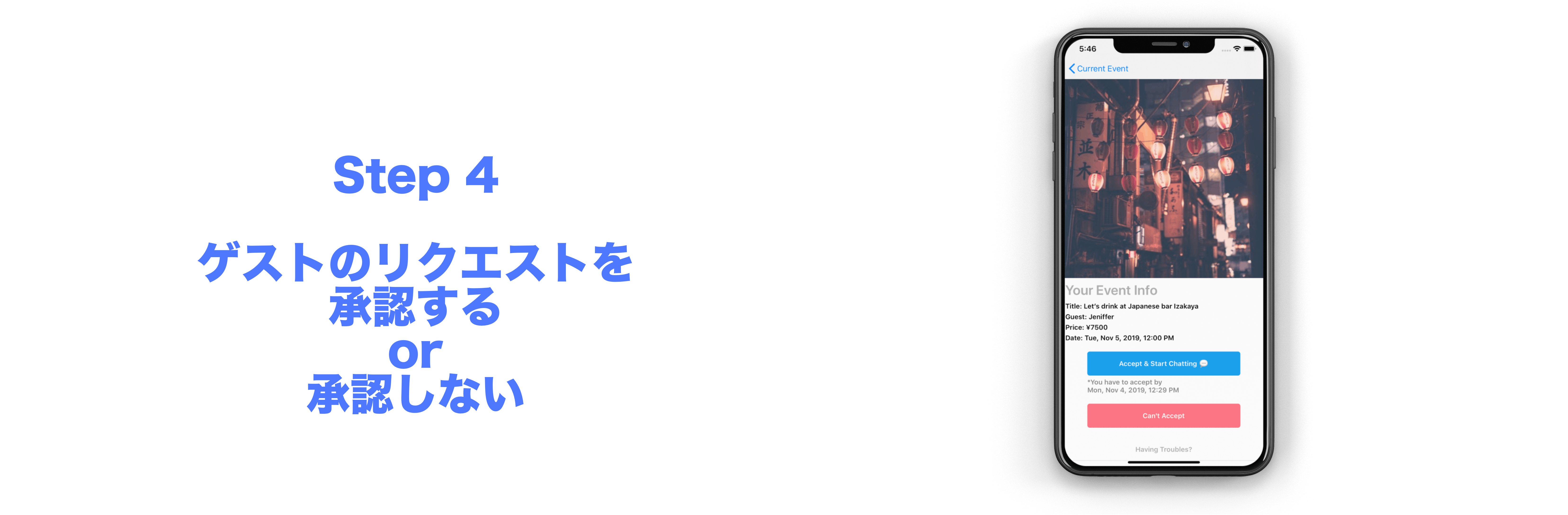 このアイディアを浮かんでから、まずは体験を提供するホストとゲストとのやりとりがスピーディー&安全なサービスを作らないといけないと思いました。