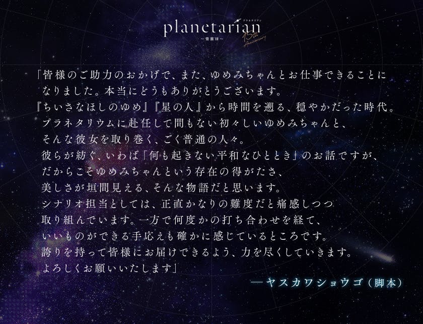 planetarian15周年および「雪圏球」クラウドファンディング達成を記念して、
