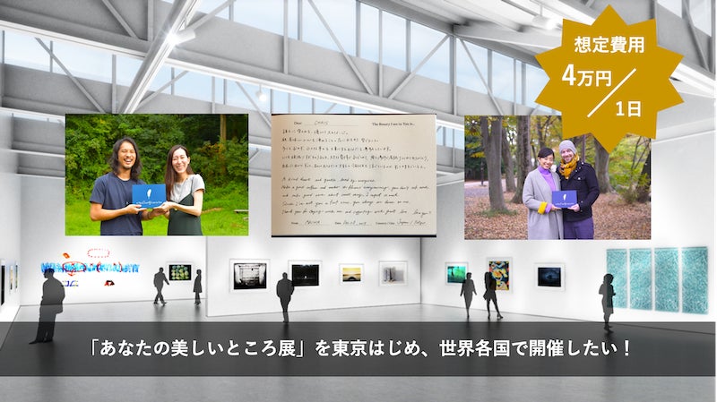 今後の250万円以上の調達額に関しては、4年後以降に開催する、実際に本に書き込まれた "世界中の人の美しいところ" を展示する「あなたの美しいところ展」の開催費用に充てさせていただきます。