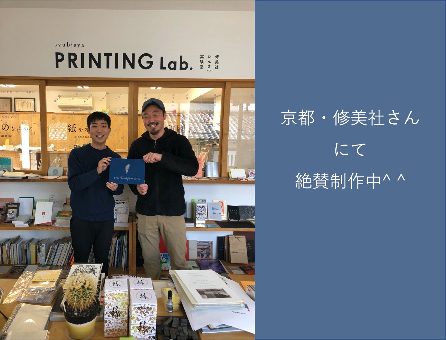 たくさんの人が受け渡しする本の特性を考え、京都の印刷会社・修美社さんのご協力のもと、高品質で耐久性のある本造りの体制を実現できました。(しかもご厚意で応援価格の割引まで...)