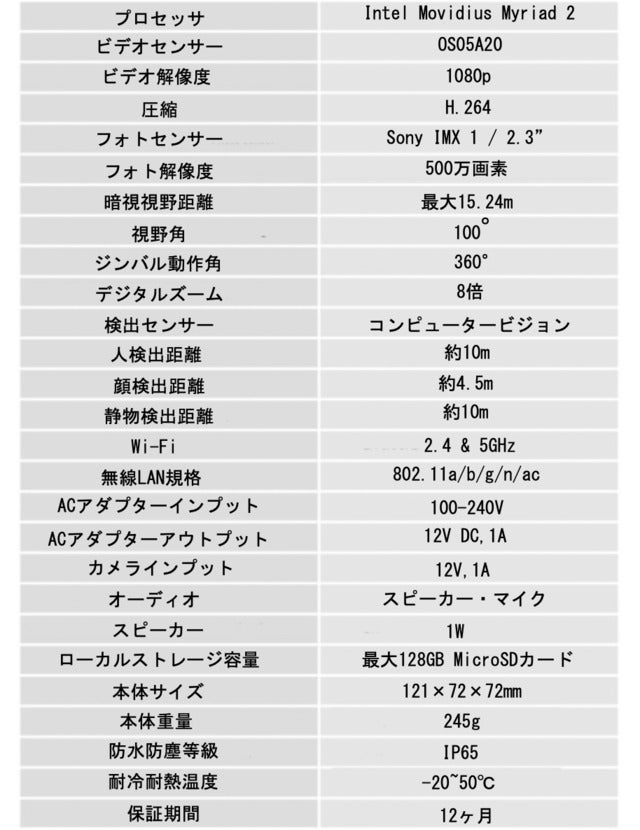 さらにSony IMX 5 Megapixelsイメージセンサーもによる、暗い場所でも最大15m先まで見通せるスターライトビジョンも搭載。