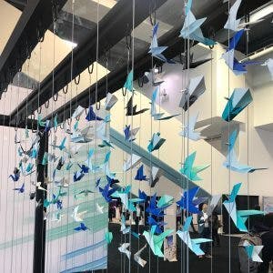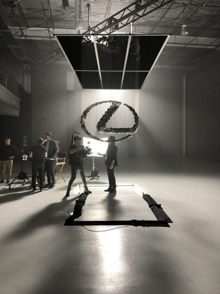 こちらのイメージは、Lexusのプロジェクトの様子です。ひとつひとつの折り紙モデルはLexusのカスタマーサービスへの感謝の手紙を元にしたものです。タローズ折り紙スタジオのスタッフ総出で、2000個を超える折り紙アートを作成し、撮影が行われました。