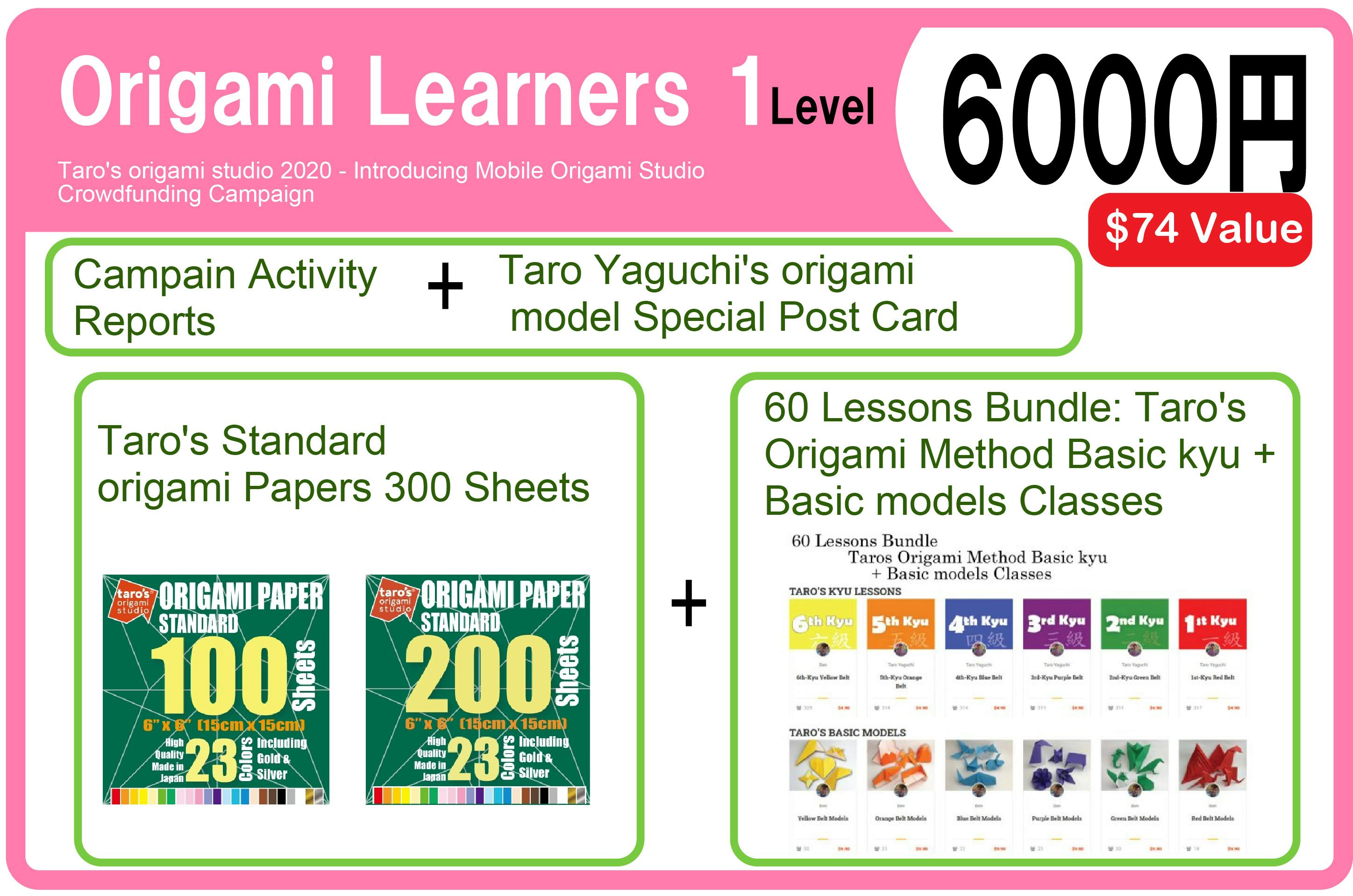 ・タローズ折り紙メソッドの各級レベルの基本折り(30種類)+各級の基本折りを使ったモデル(30個)のビデオコース(60レッスン)