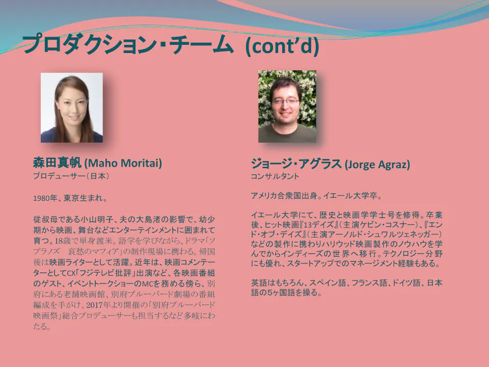 高校留学に始まり短大卒で飛び込んだ映像業界。あっという間に20年以上です。これまでに百本近くのTV、映画、CM製作に携わり、スピルバーグ、タランティーノといったハリウッド大物監督作品の製作チームに加わるという機会にも恵まれました。そしてこのたび、その大好評を得たショート作品をもとに劇場用の同名長編映画を作る運びとなり、皆様にご支援のお願いをするに至っています!