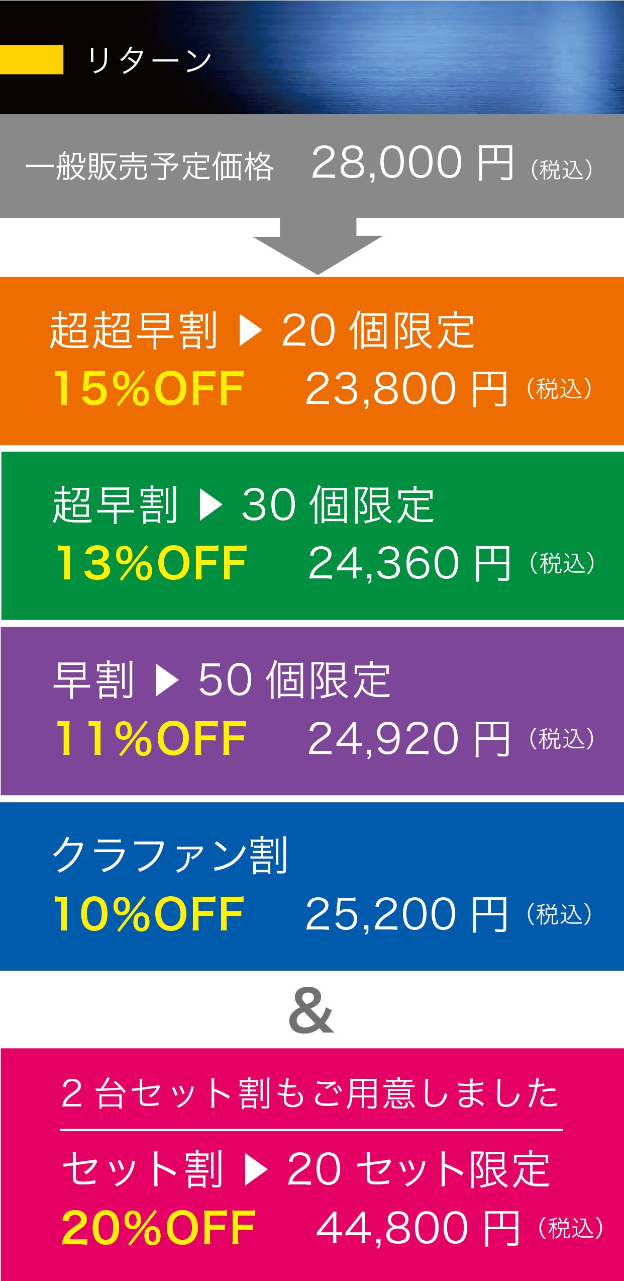 ※本プロジェクトを通して想定を上回る皆様からご支援を頂き、現在進めている環境から量産体制を更に整えることができた場合、正規販売価格が販売予定価格より下がる可能性もございます。