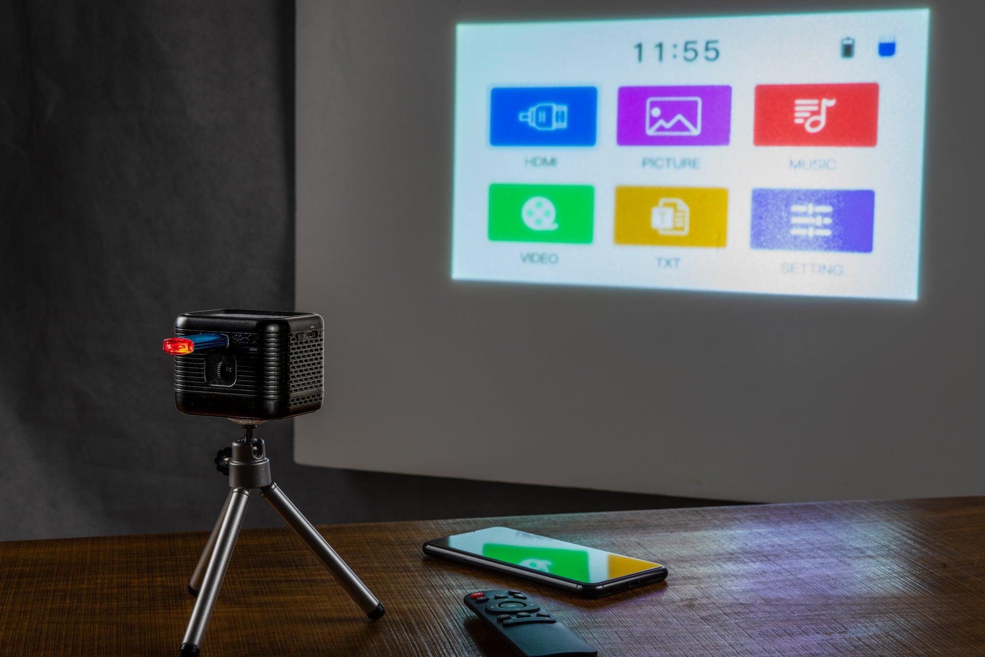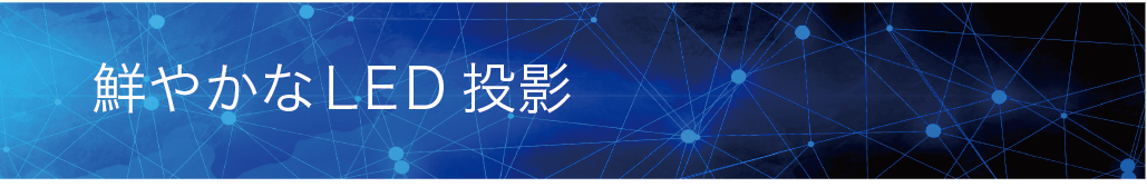 プロジェクターの光源には最近主流の LED 方式を採用し、レンズの寿命は約 30,000時間。省電力なため3000mAhの内蔵バッテリーで約2時間駆動します。さらに映画館や大型プロジェクターなどでも使われている投影方式であるDLP(ディスプレイ・テクノロジー)を採用。深く鮮やかなカラーコントラストを実現しています。