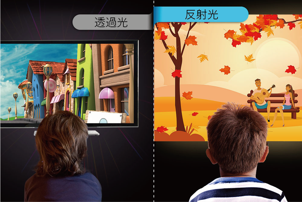 一方、普段の生活のように太陽や照明の光が物に反射した「反射光」で見ている場合はほとんど目が疲れません。特にお子様が動画を見る際には、直接テレビやパソコン画面を観るのではなく、プロジェクターに投影して観る、目に優しい環境を作ることをお薦めします。