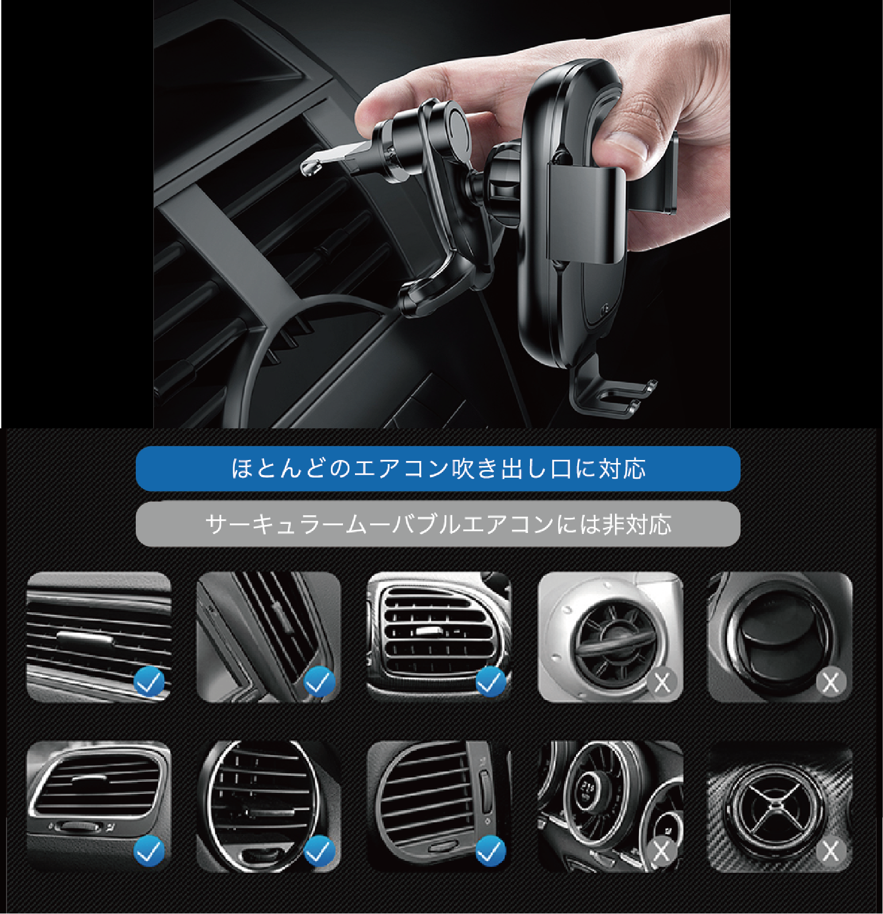 赤外線センサーにより、スマホが近づくと自動クランビングエアベントが作動。どんな機種のスマホでもアームがしっかりホールドします。