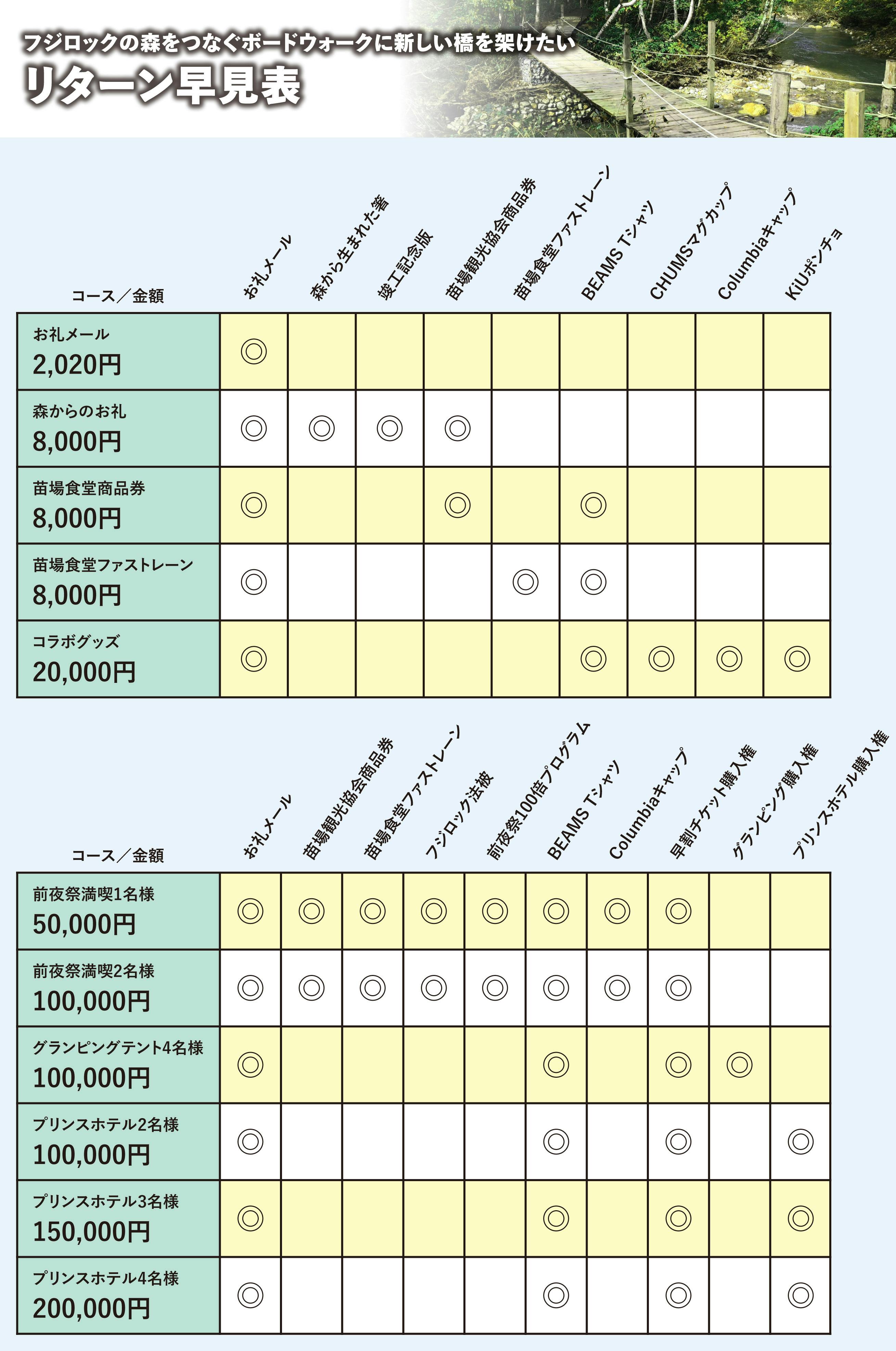 フジロック延期に伴う一部返礼品の取り扱いは、本プロジェクト内活動報告にてご確認ください。(6/5追記)