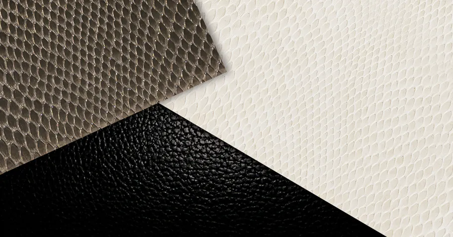 コラーゲン繊維構造によく似たマイクロファイバーに樹脂を絡ませたものをベースとしており、表面にポリウレタンを染み込ませた合成樹脂を塗ることでより動物皮革に近い風合いに仕上げることができます。