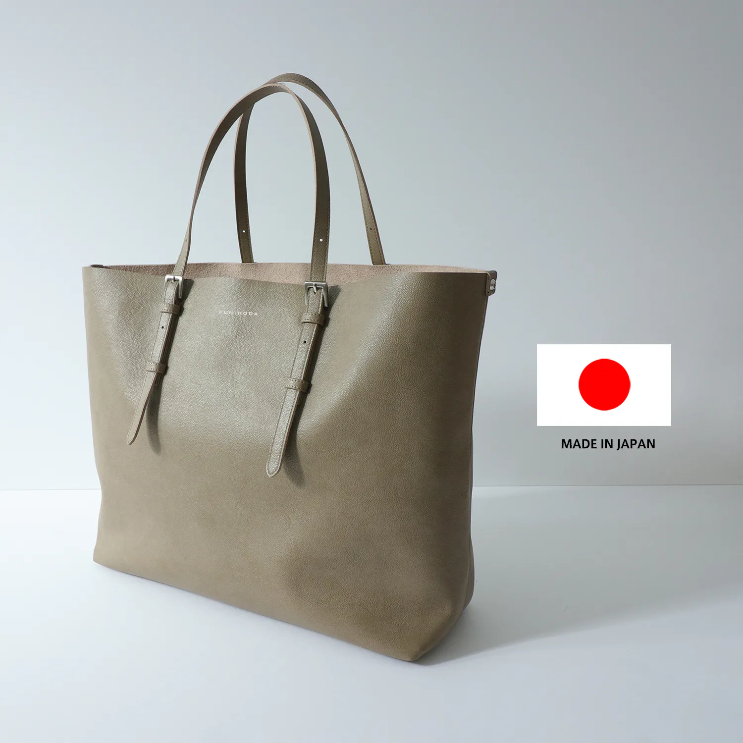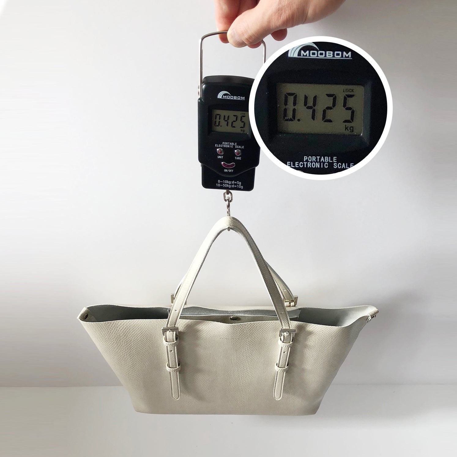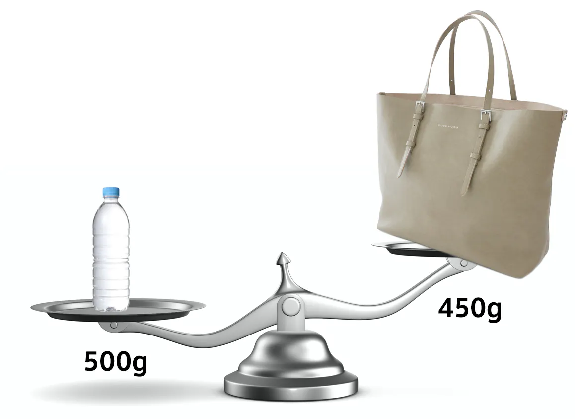 適度な厚みとハリがあるボディながら、Mサイズでわずか450g前後という軽さを実現!一般的な同サイズの本革バッグと比べて半分以下の重量です。