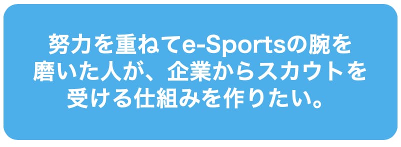 そこで私が選んだのは「e-Sports」です。e-Sportsというと、ただ流行りに乗っただけに思われてしまうかもしれませんが、確固たる理由があります。ひとつは、私が大のゲーム好きだから。というのは置いておいて、様々なタイプの障害がある中で、コントローラーなど入力機器の工夫ひとつで公平に対戦ができるからです 。